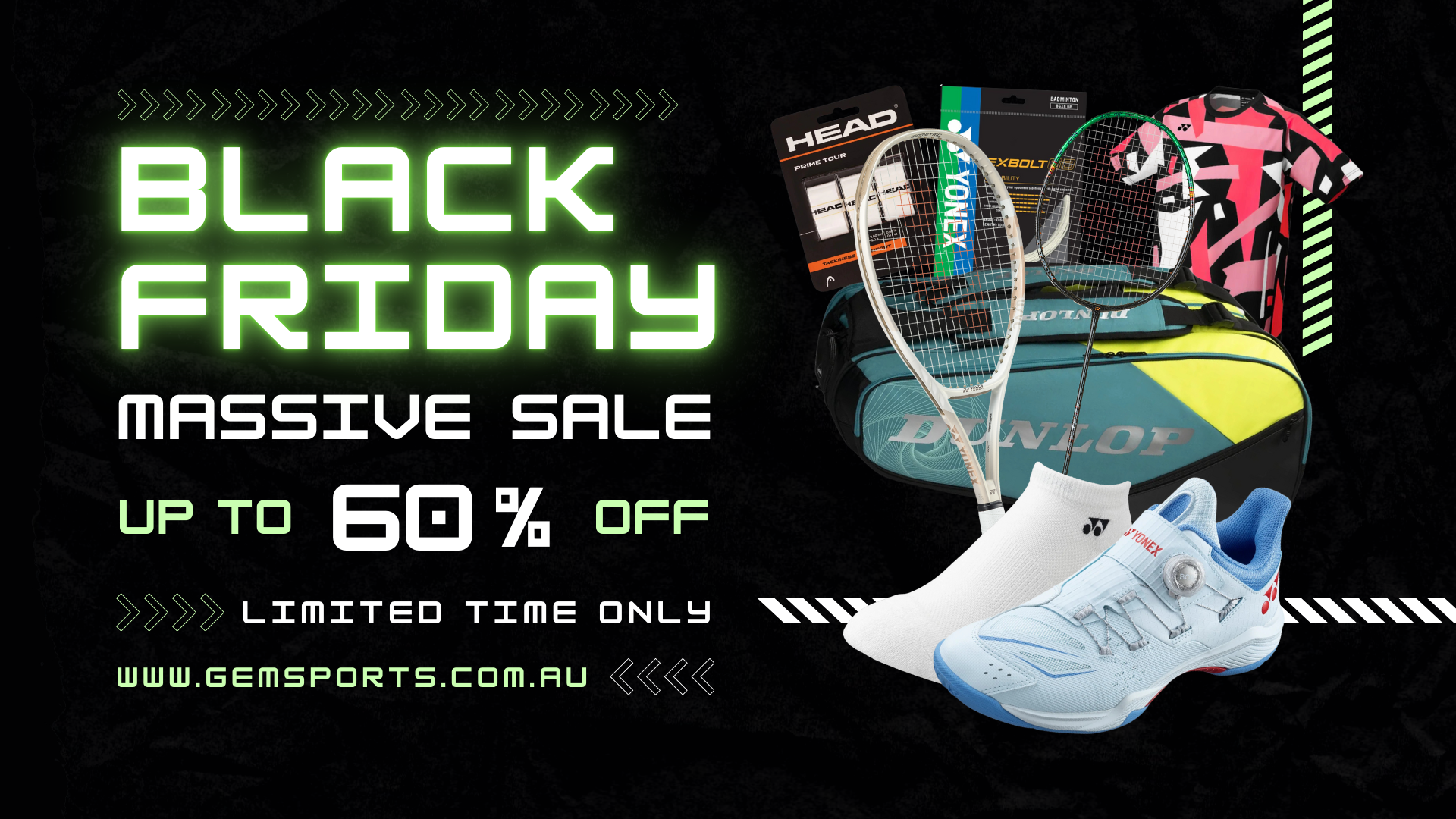 For Brands: YONEX, HEAD, VICTOR, DUNLOP, MIZUNO & more.